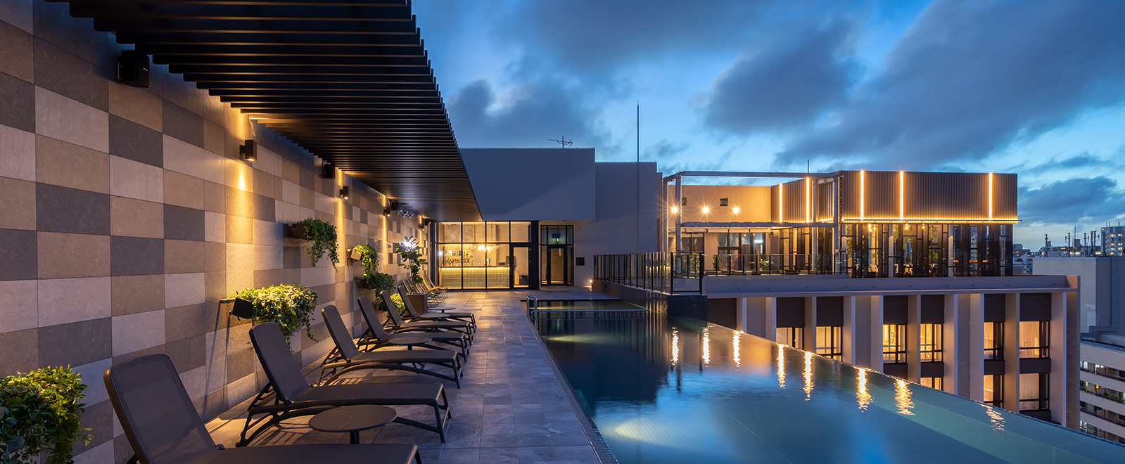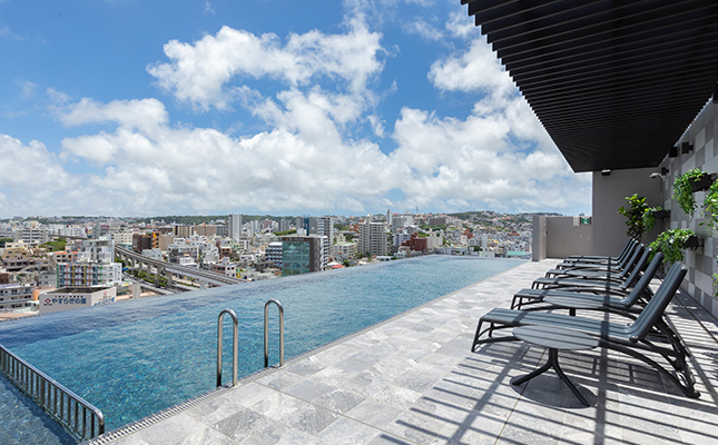 ここから眺める那覇の街並みとのんびりと過ごせるプールが最高すぎてずっといたくなるような空間です。