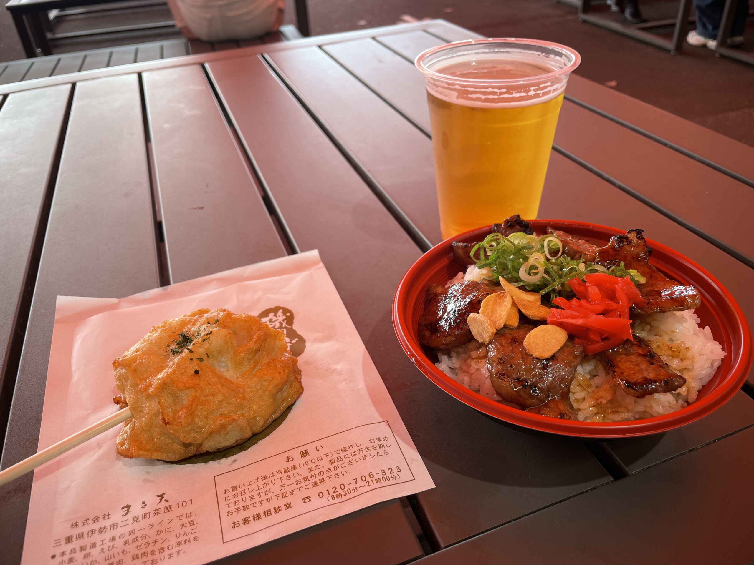 生ビールと『熊野牛丼』、『じゃがバター天』を注文。
