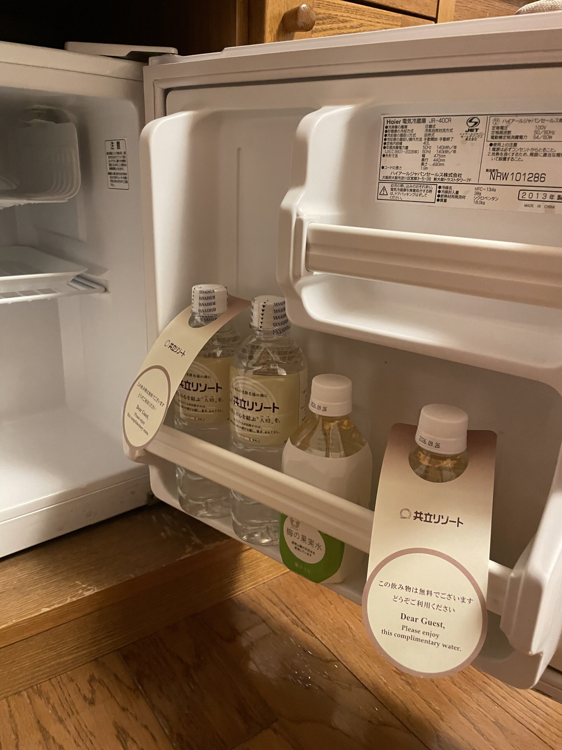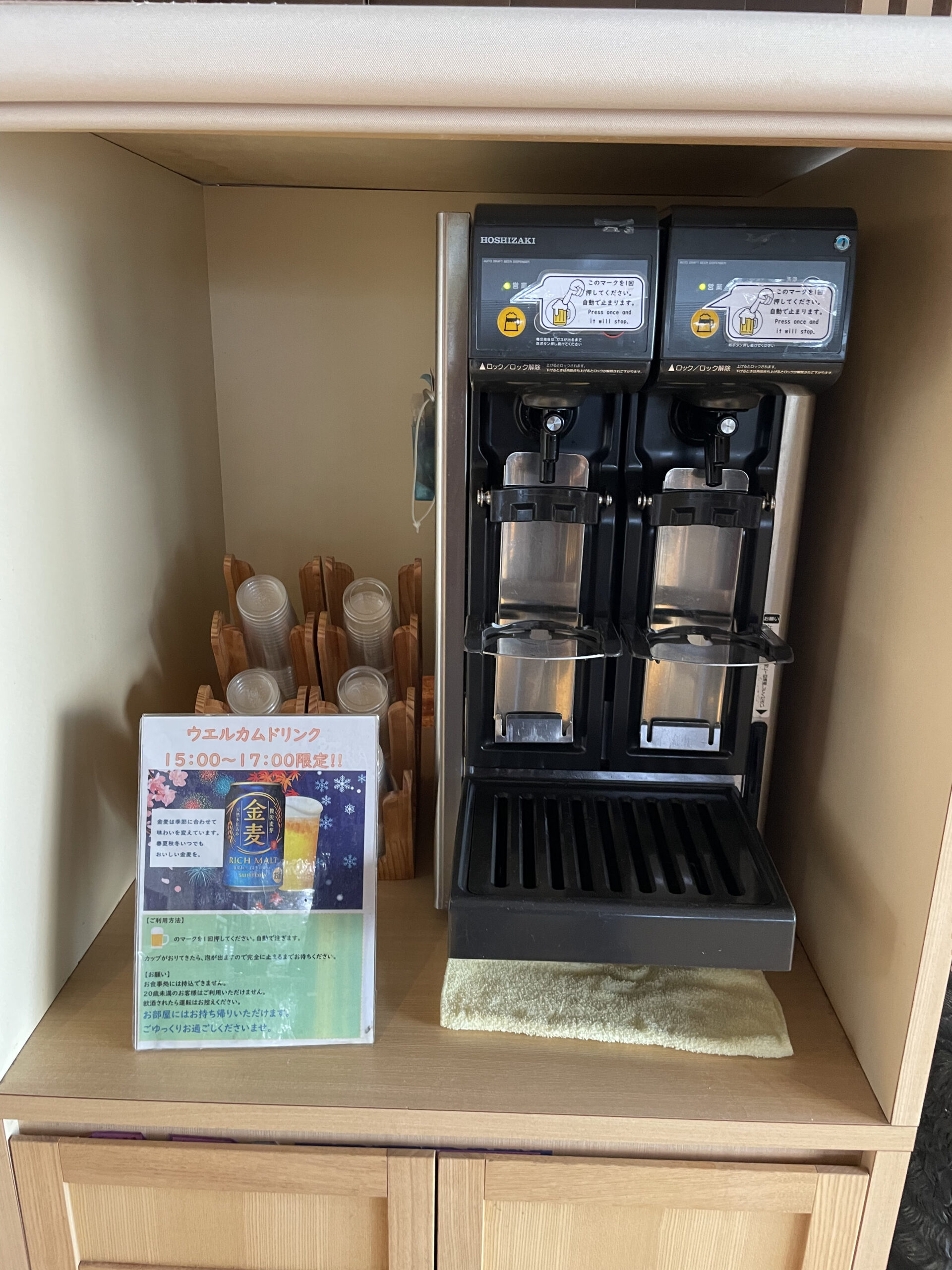 湯上りには、夜はアイス、朝は乳酸菌飲料と他の共立メンテナンスの宿泊施設と同じサービスがあります。