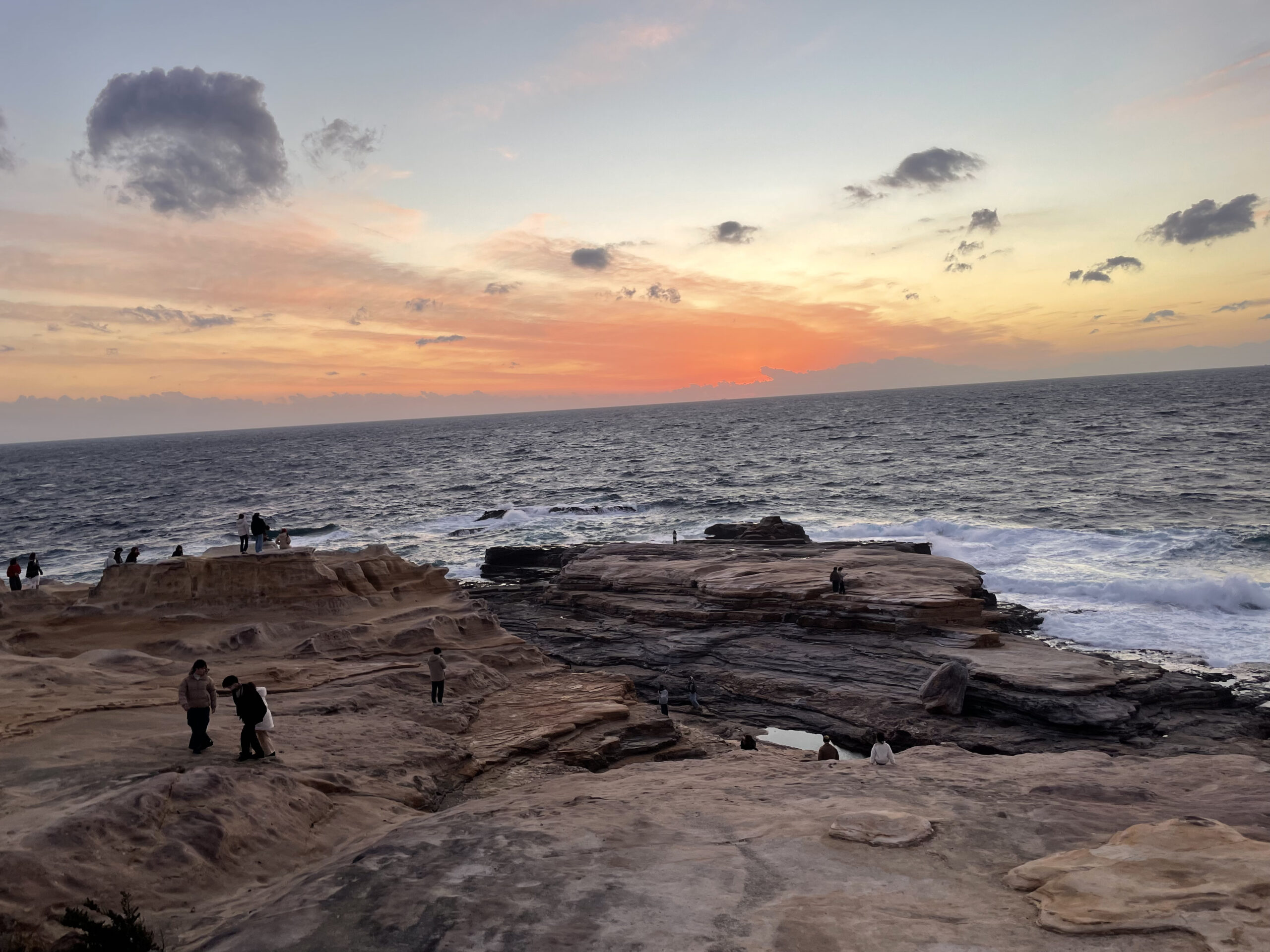 ホテルから歩いて10分くらいで到着すると、ちょうど夕焼けがいい感じになっていてとてもエモいです…(笑)