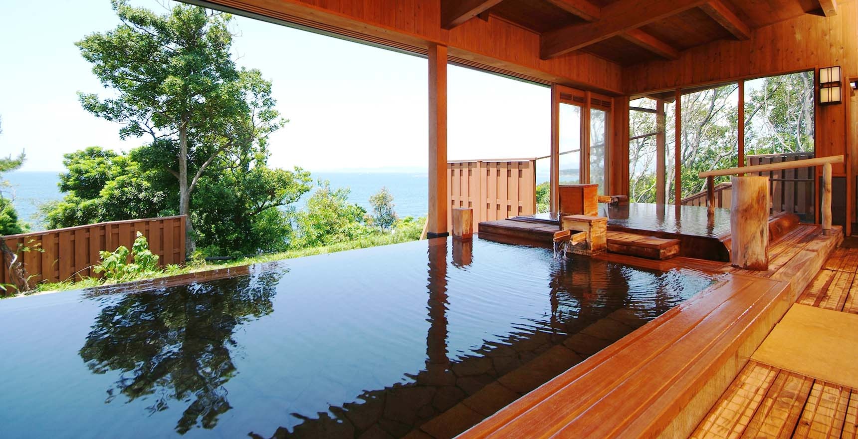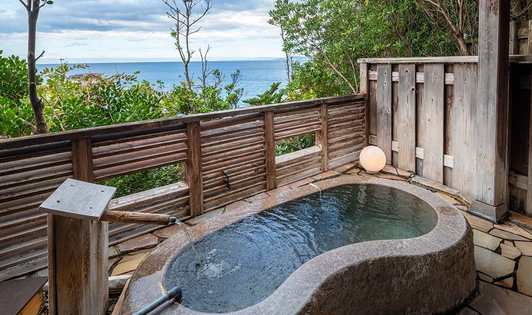 樽風呂はとても大きく、太平洋の風を浴びながら優雅なひとときを過ごすことができます…。